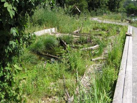 Im Salzburger Zoo gibt es auch ein Schildkröten-Freigehege zu besichtigen. Die vier folgenden Aufnahmen wurden im Juli 2014 geschossen. Der Teich ist mir der Seekanne größtentels bedeckt. Im Teich gibt es Fische und Frösche.